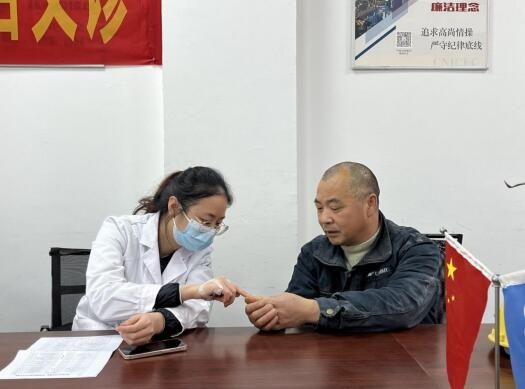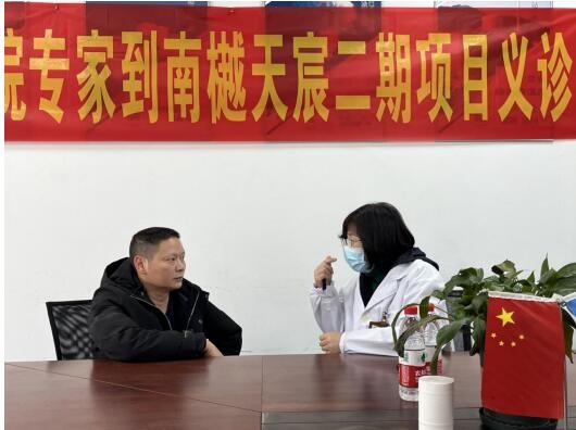 本次活動在南樾天宸二期項(xiàng)目部會議室開展?;顒蝇F(xiàn)場,健康專家采取面對面坐診形式,為員工進(jìn)行健康答疑,提出針對性的預(yù)防和醫(yī)療建議,引導(dǎo)員工在工作之余養(yǎng)成健康生活習(xí)慣,加強(qiáng)多方面健康知識學(xué)習(xí)。由于長期在戶外進(jìn)行施工工作,一線員工們大多存在不同程度的腰椎損傷、噪音聾、手臂震動病等職業(yè)疾病,面對此情況,專家們現(xiàn)場教授員工健康自測方法,并為員工量身打造體檢方案,便于員工下一步的健康診療。