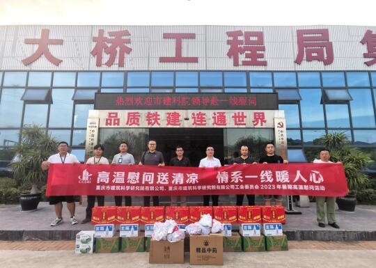高溫送清涼,關(guān)懷潤(rùn)人心。為落實(shí)好夏季防暑降溫工作,助力一線生產(chǎn),8月11日下午,重慶設(shè)計(jì)集團(tuán)市建科院公司黨委委員、副總經(jīng)理、總工程師張京街同志赴江南分中心承接的“軌道交通24號(hào)線一期質(zhì)量檢測(cè)”項(xiàng)目開(kāi)展慰問(wèn)活動(dòng),為高溫下堅(jiān)守在項(xiàng)目一線的檢測(cè)人員送上清涼慰問(wèn)品。技術(shù)質(zhì)量安全部和生產(chǎn)經(jīng)營(yíng)發(fā)展部相關(guān)人員陪同慰問(wèn)。