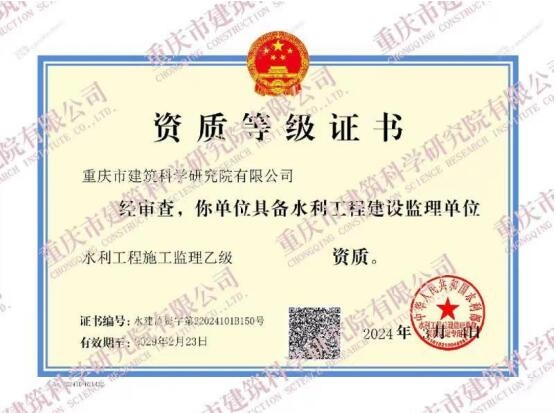 近日,經國家水利部核準,重慶設計集團所屬子企業(yè)重慶市建筑科學研究院有限公司申請的水利部水利工程施工監(jiān)理乙級資質成功獲批。