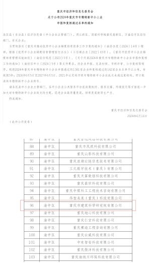 6月16日,從市經(jīng)濟(jì)信息委傳來喜訊,重慶設(shè)計(jì)集團(tuán)所屬子企業(yè)重慶市建筑科學(xué)研究院有限公司獲2024年重慶市專精特新中小企業(yè)稱號(hào)。