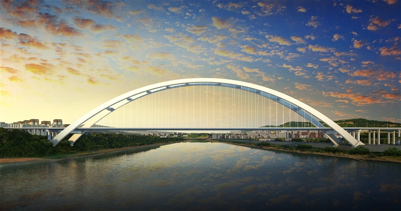 瀘州市藍田過江通道(藍田長江五橋)及連接線工程是《瀘州市跨江通道專項規(guī)劃(2014-2030)》中規(guī)劃的新建8座跨江通道之一,項目包含跨江主橋、兩岸引橋、學院中路升級改造、未來大道延伸線工程等,總投資約35.74億元。其中,主橋凈跨徑為570m鋼箱拱橋、雙向六車道,總寬48.5m,總長度為612m,為目前在建世界最大跨徑中承式鋼箱拱橋。