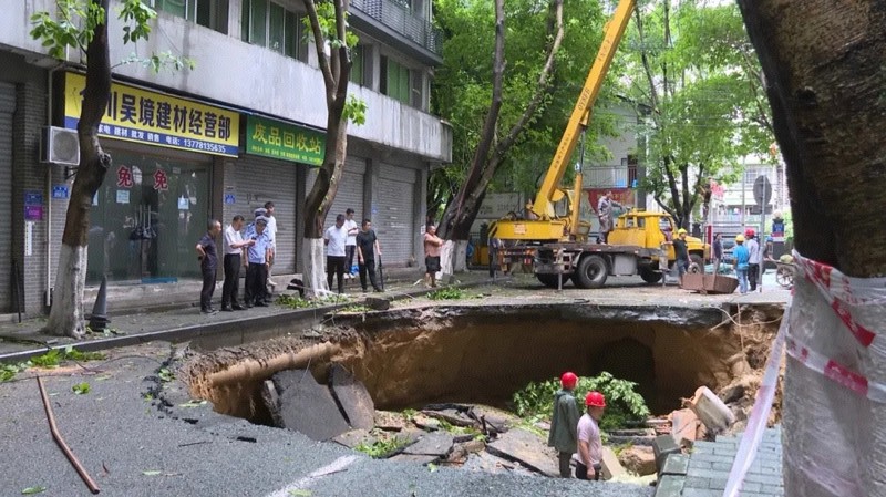 某區(qū)某街道路段因暴雨影響突發(fā)塌方,??吭诼愤叺膬奢v小車和一輛摩托車墜入坑中,事故發(fā)生后屬地公安、消防、應急等多部門迅速響應趕赴現(xiàn)場開展緊急處置工作,市建科院立即派出專業(yè)檢測團隊,前往現(xiàn)場開展道路兩側建筑物的變形檢測、監(jiān)測工作,作出準確技術評判,為后續(xù)險情處置提供理論依據(jù)。