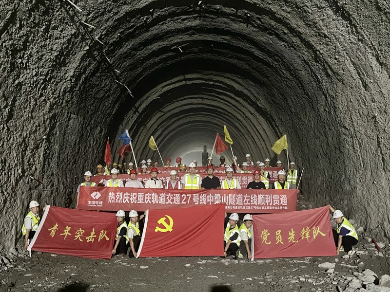 軌道交通27號線中梁山隧道左線貫通現(xiàn)場