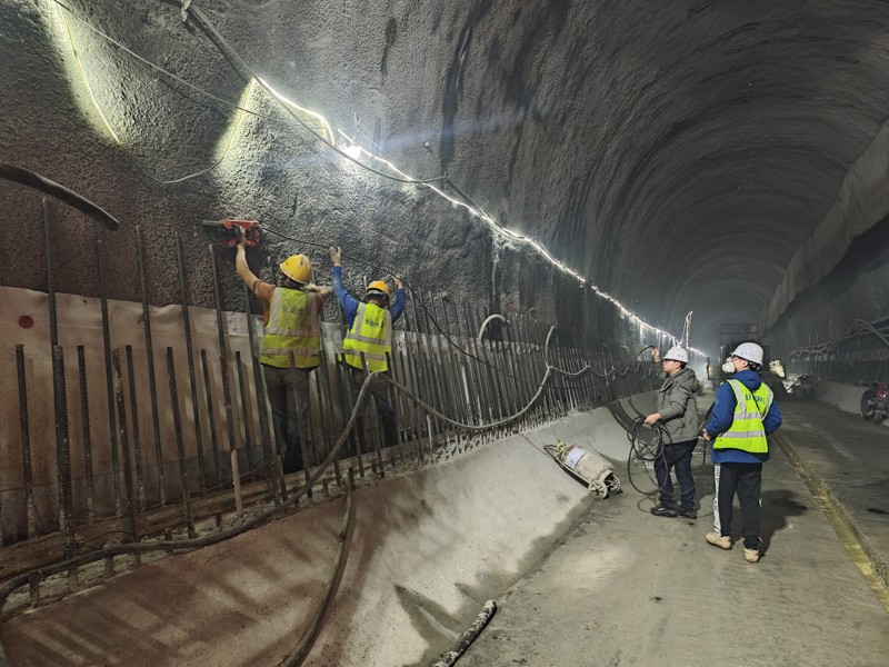 監(jiān)督檢測中心檢測人員在隧道內(nèi)進(jìn)行檢測作業(yè)