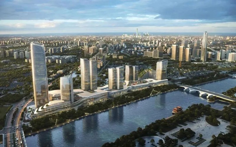 (高度達(dá)249.9米的超甲級濱水寫字樓運河天璽鋼結(jié)構(gòu)封頂)