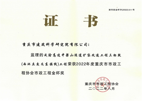 建科大廈工程獲三峽杯優(yōu)質(zhì)結(jié)構(gòu)工程獎(jiǎng)